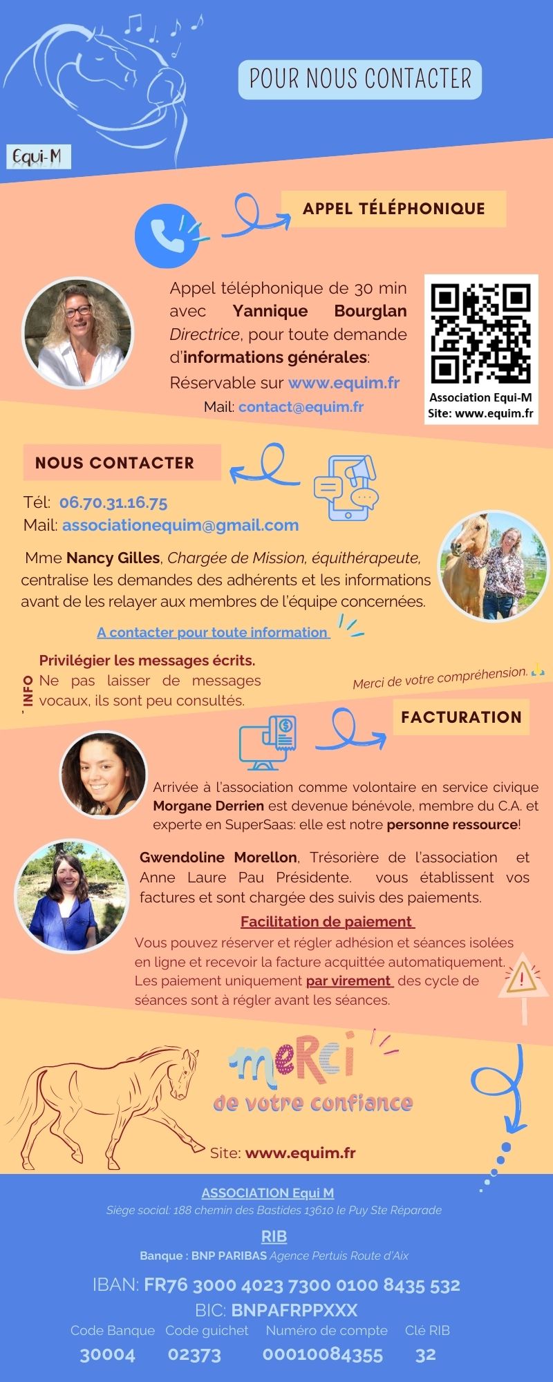 Pour plus de renseignements, possibilité de prendre un rdv téléphonique en ligne avec la Direction ou par mail:contact@equim.fr